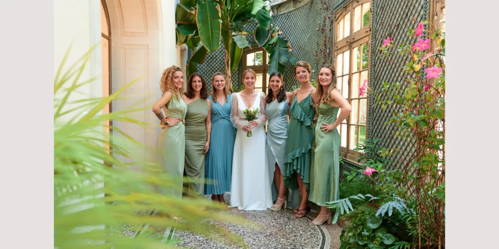 Paris sets its own rhythm for the seasons. Spring weddings call for soft pastels, lightweight layers, and the promise of sunshine in the gardens. Autumn weddings invite richer tones such as deep emeralds, golds, and rusts with cashmere wraps or tailored jackets for that crisp evening air. Whatever the time of year, your look should whisper elegance rather than shout, because in Paris, true style is all about grace in the details.