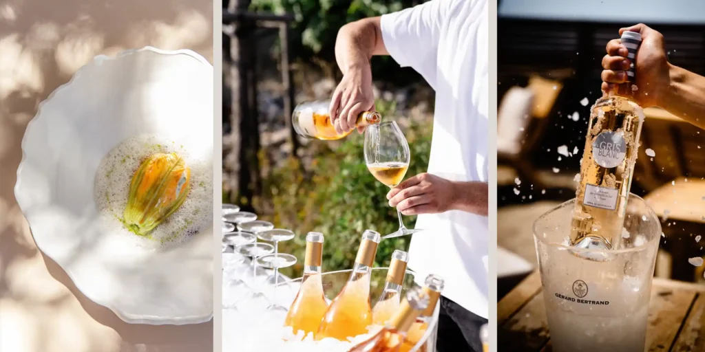 | Chateau L’Hospitalet | Biodiversity Champ | 350 / 92 | Price on Request | Biodynamic viticulture; 50km-radius sourcing. | TGV to Narbonne + 15min coastal drive. |
