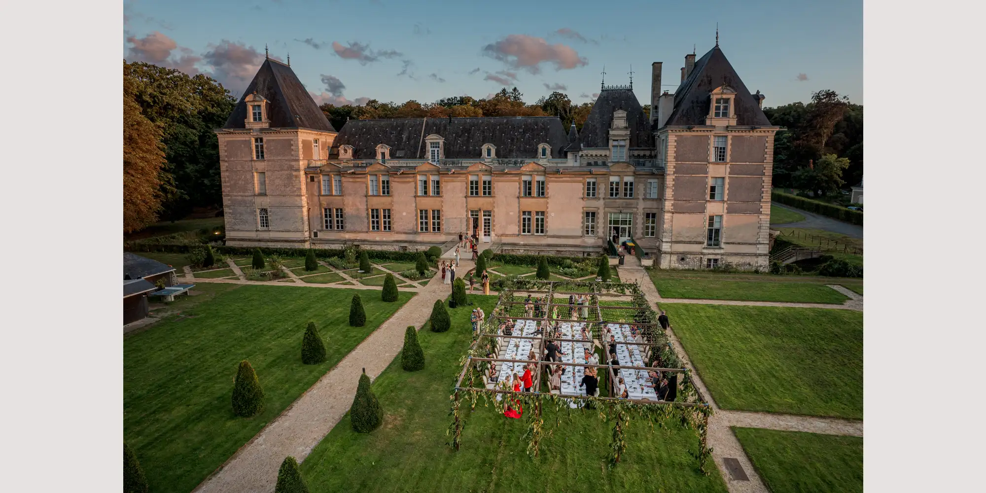 When it’s time to say “I do” there’s plenty of options. Head on down to the chapel or the formal French gardens. If you prefer a rustic chic setting, opt for the enchanting wood next to the chateau or even the Pigeonnier, a scenic landmark a bit further into the forest.