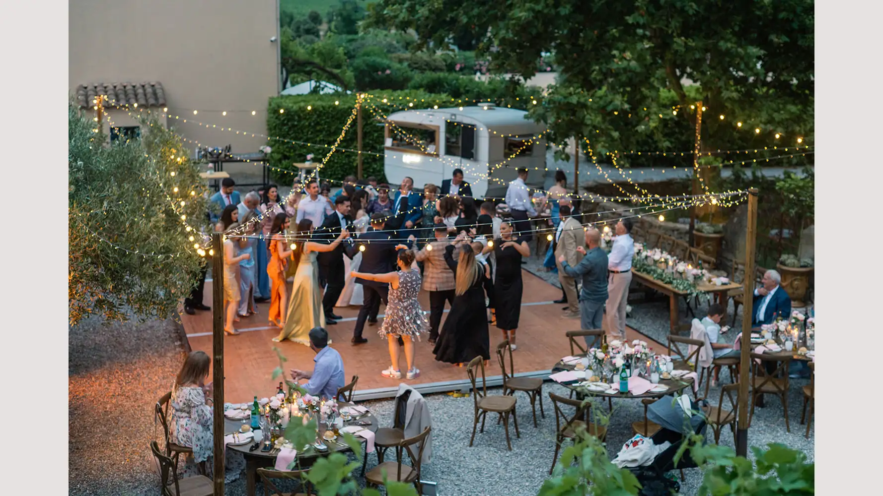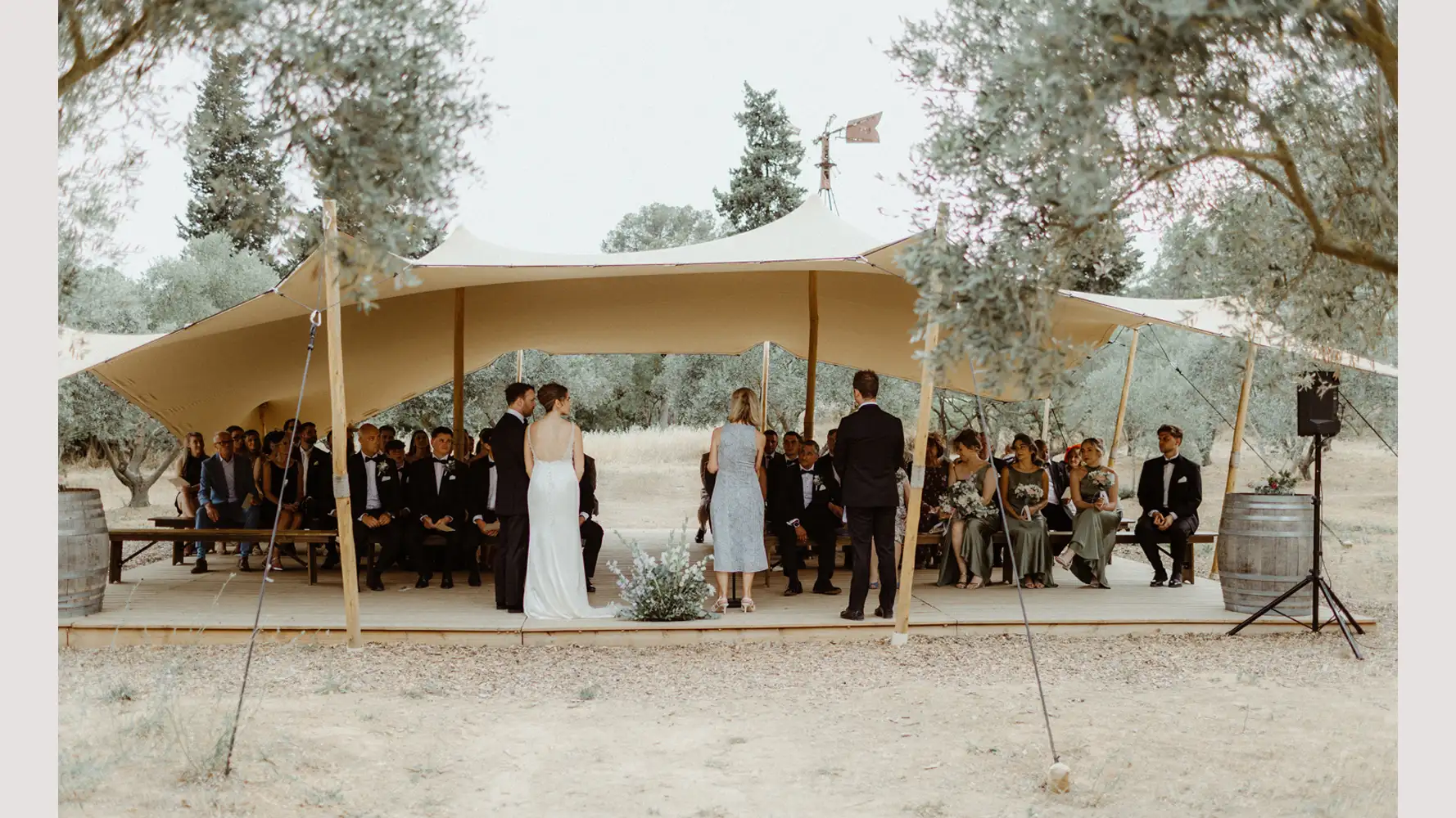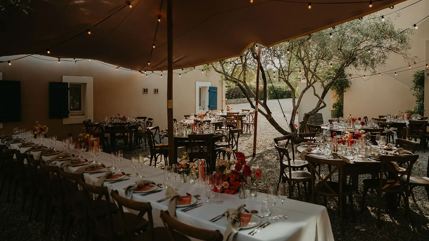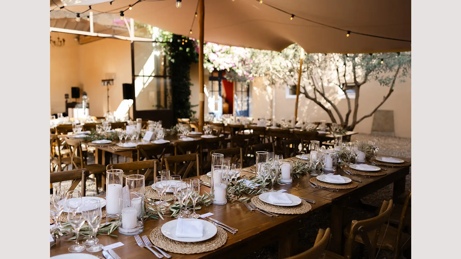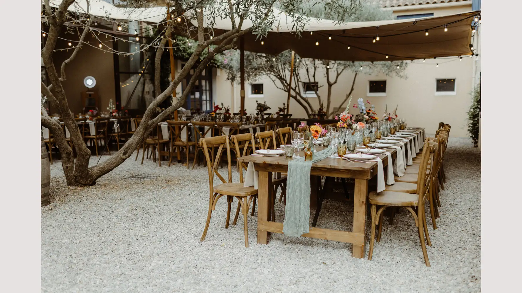 You can choose your favourite place to host dinner, whether in the olive grove, scattered throughout with fairy lights, or in the stunning beautiful Bohemian style tent. There is also a superb Orangerie with traditional beams and large glass doors opening to the courtyard where you can dance the night away.