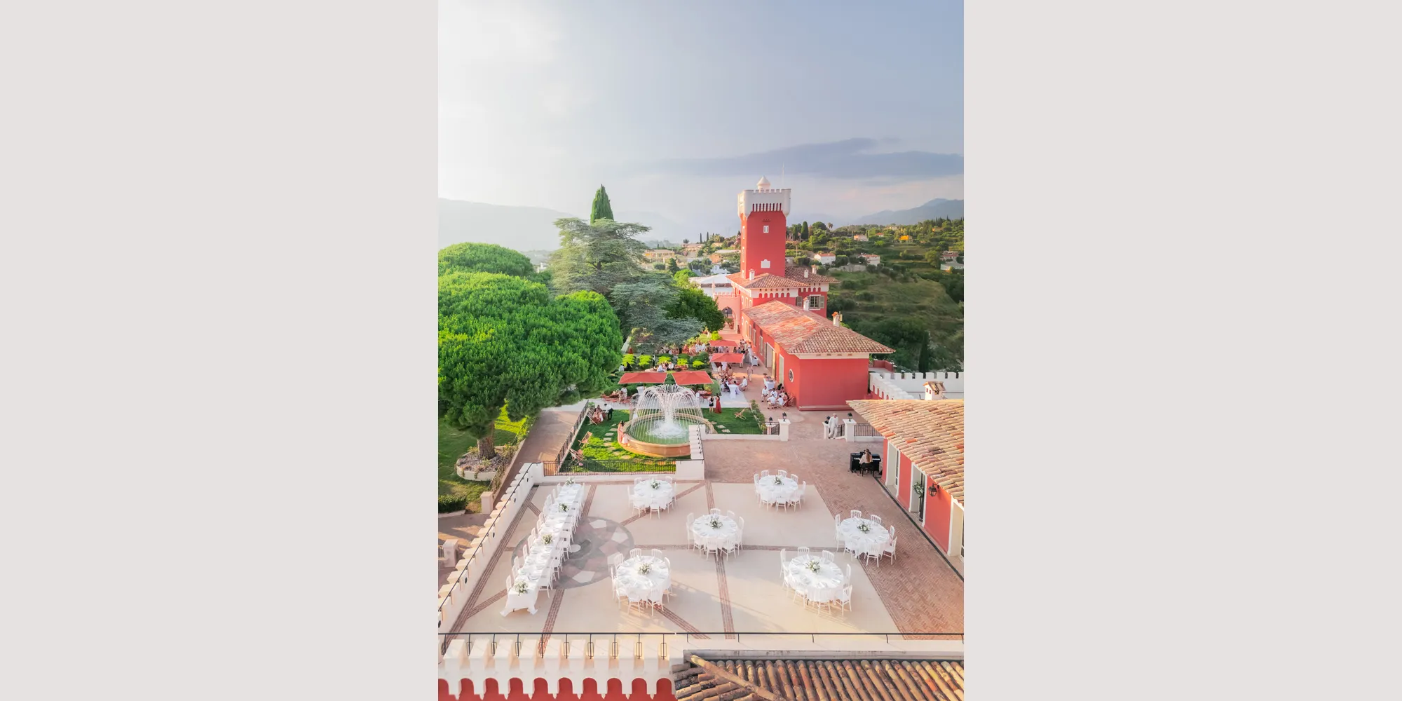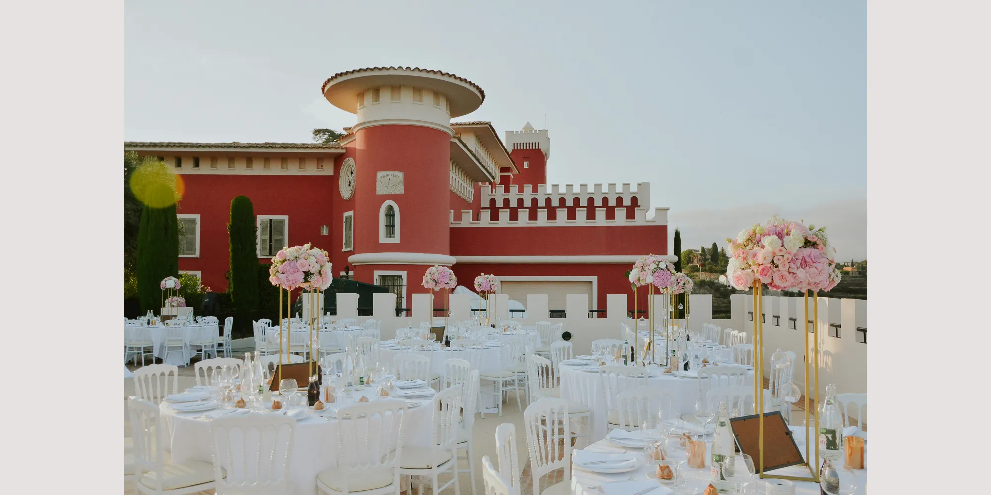 Perched high on the hills of Nice, surrounded by rolling vineyards and views that sweep from the Alps to the Mediterranean, Chateau de Crémat is one of the French Riviera’s most iconic wedding venues. With its ochre façades, neo-Tuscan arches, and a history rooted in glamour and art de vivre, this château perfectly embodies the distinctive allure of the Côte d’Azur – a blend of romance, elegance, and sophistication.