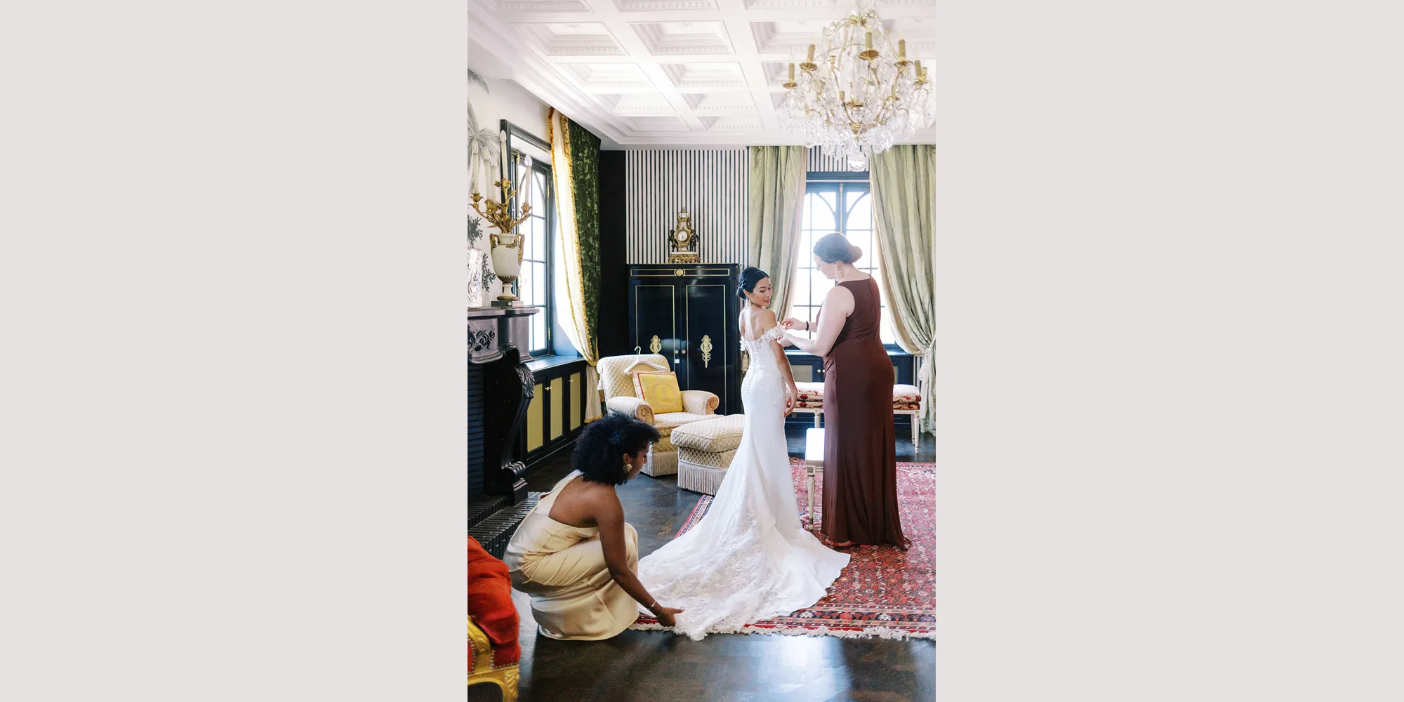 While there is no accommodation on site, plenty of lodging options can be found nearby. Within the château itself, couples will also enjoy access to La Loge – a refined private space designed for getting ready in comfort and style before the celebration.