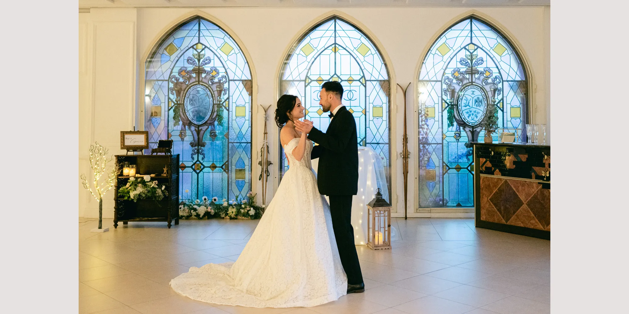 A wedding at Chateau de Crémat is an invitation to celebrate in cinematic style. Imagine exchanging vows on the sunlit terrace overlooking the Baie des Anges, followed by cocktails in manicured French gardens scented with roses and olive trees. As twilight falls, guests gather in the Salle Antoine Mari, where magnificent stained-glass windows bathe the room in soft light, or beneath the grand Verrière, an exquisite piece of contemporary architecture.