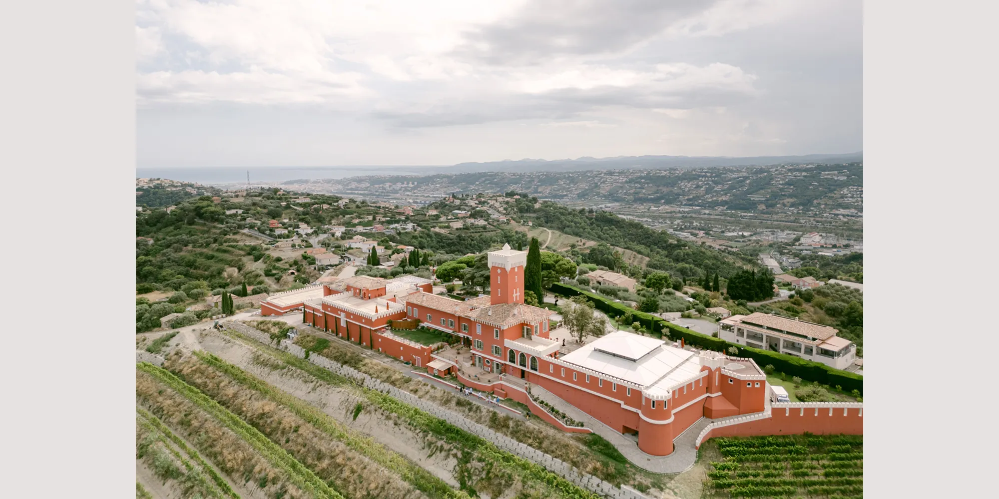 "Perched high on the hills of Nice, surrounded by rolling vineyards and superb views all around, Chateau de Crémat is one of the French Riviera’s most iconic wedding venues."