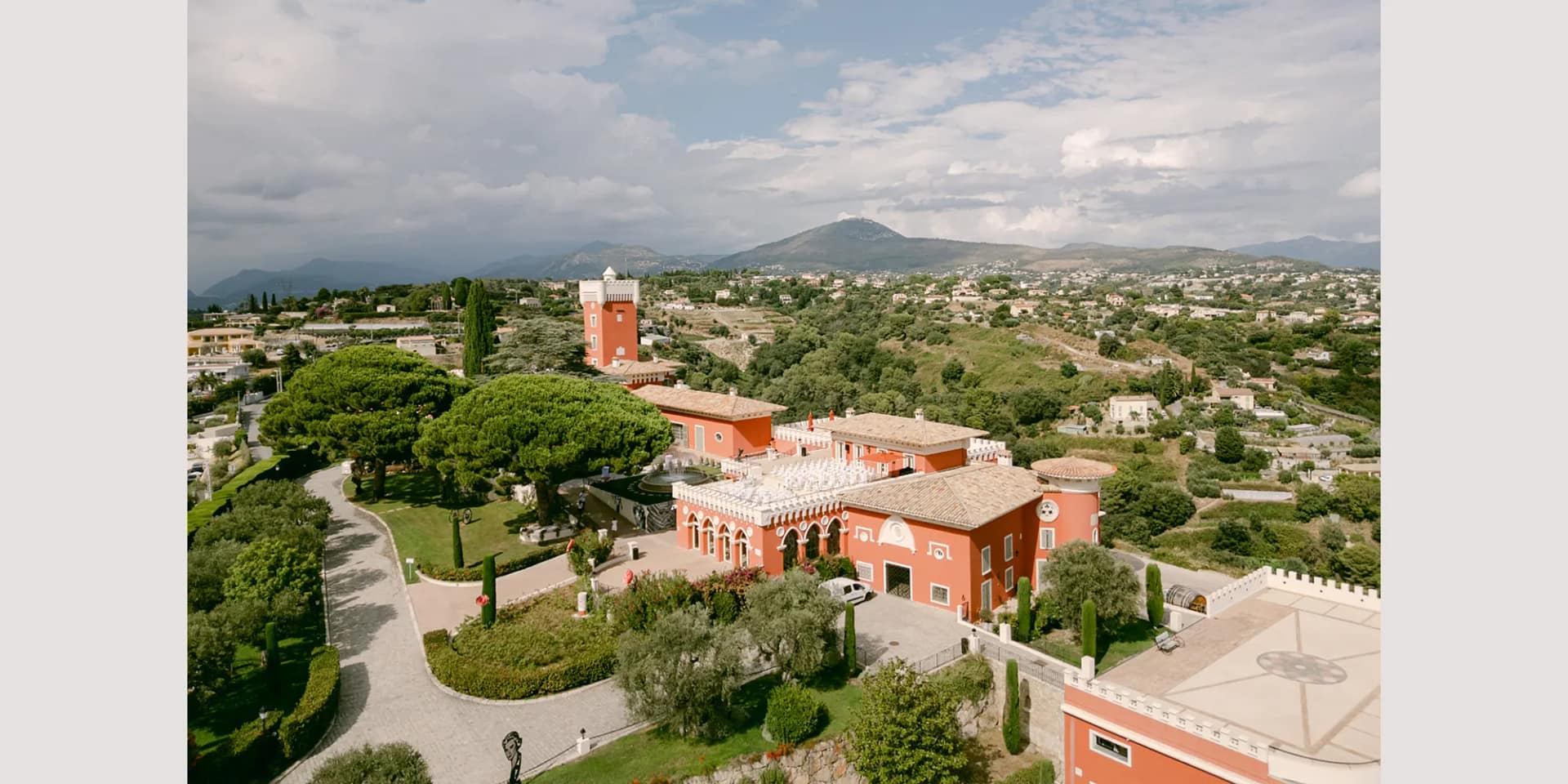 Perched high on the hills of Nice, surrounded by rolling vineyards and views that sweep from the Alps to the Mediterranean, Chateau de Crémat is one of the French Riviera’s most iconic wedding venues. With its ochre façades, neo-Tuscan arches, and a history rooted in glamour and art de vivre, this château perfectly embodies the distinctive allure of the Côte d’Azur – a blend of romance, elegance, and sophistication.