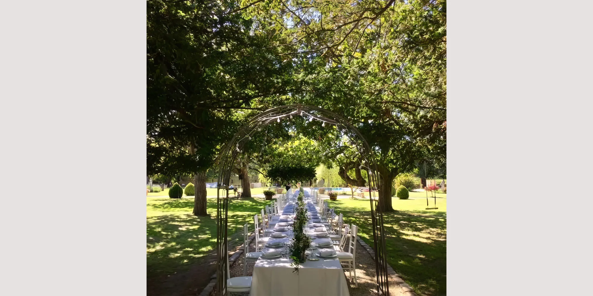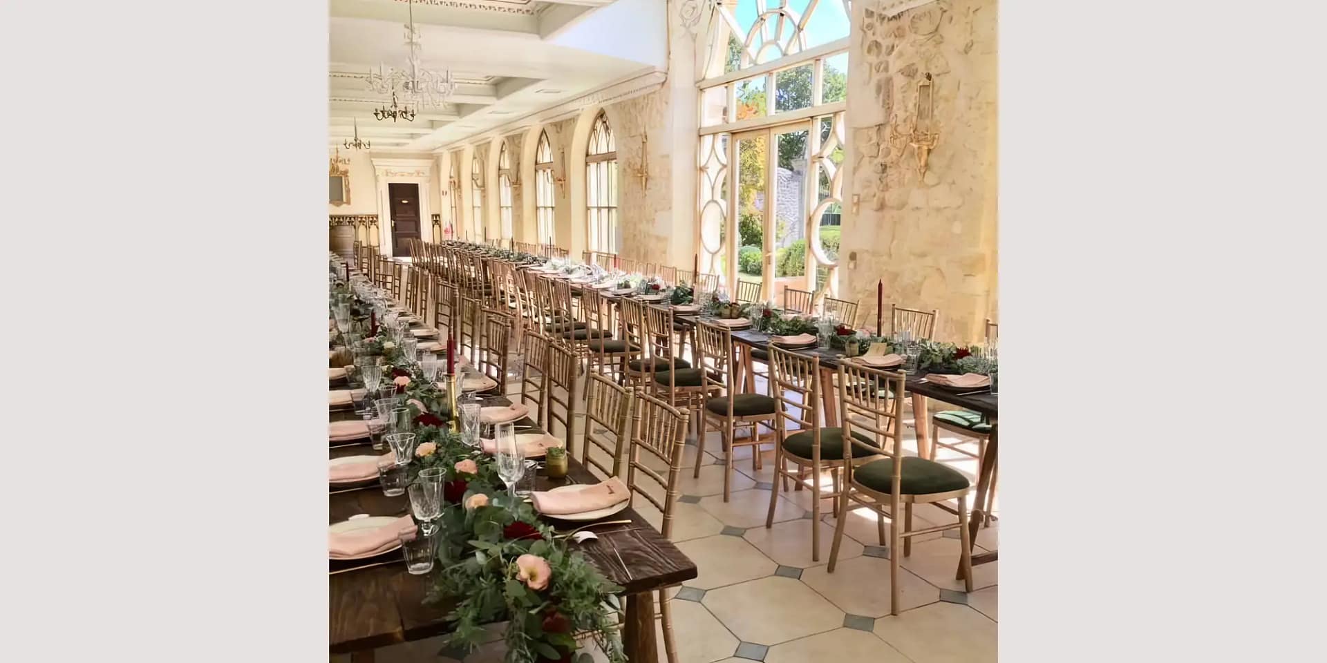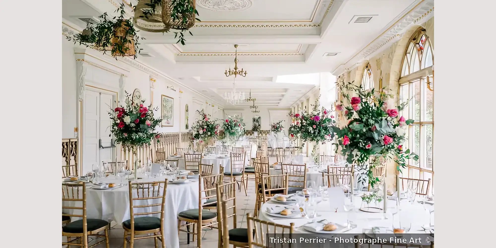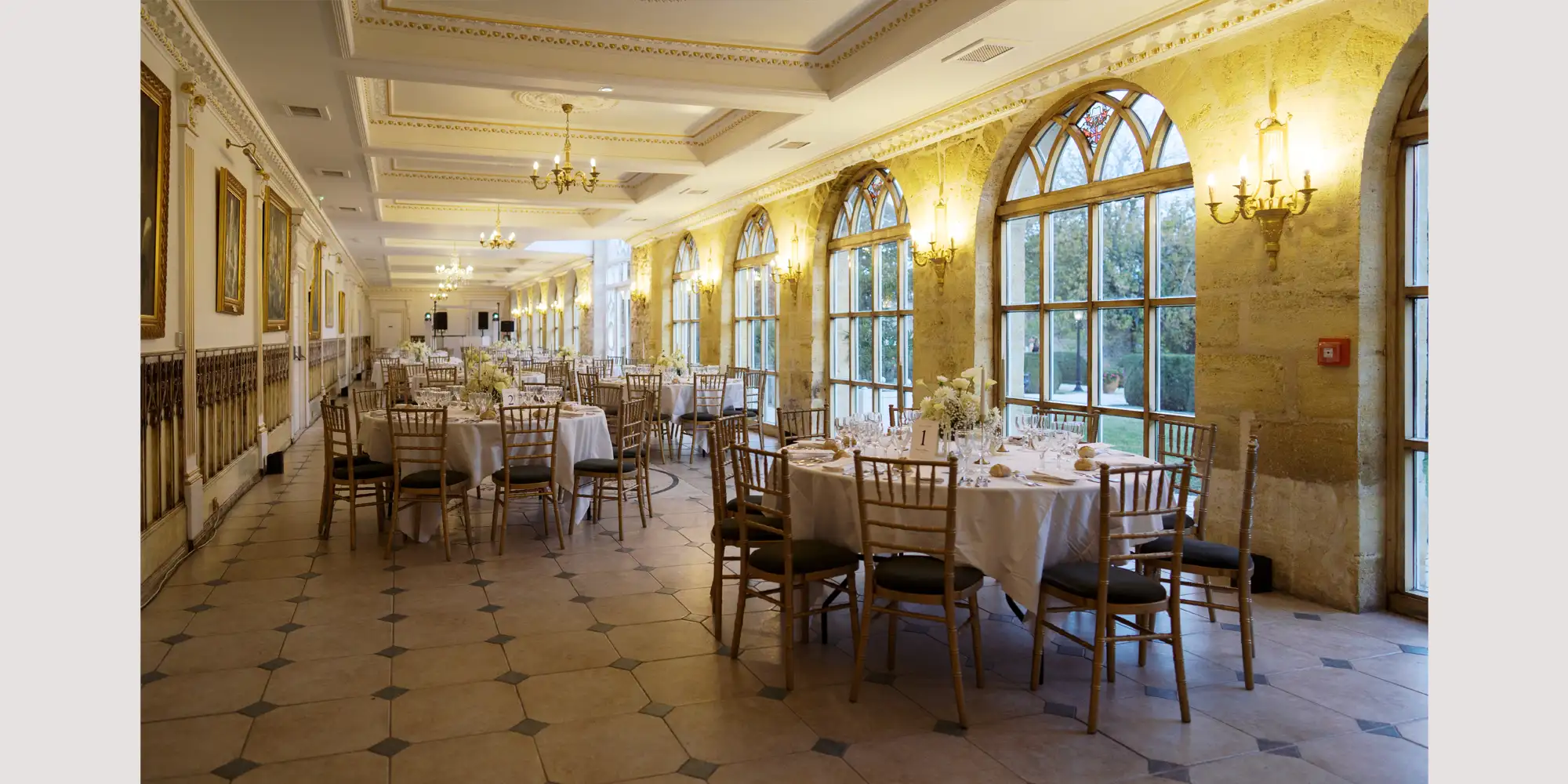 Your ceremony can unfold at the edge of the vineyards, framed by the rows of grapes that have shaped this landscape for generations. After the “I dos,” guests can enjoy a relaxed cocktail on the lawn before moving to the Orangerie for dinner. This 12th and 17th-century space is truly gorgeous – filled with natural light, chandeliers and tall windows. Opening directly onto the gardens, it can host up to 180 guests.