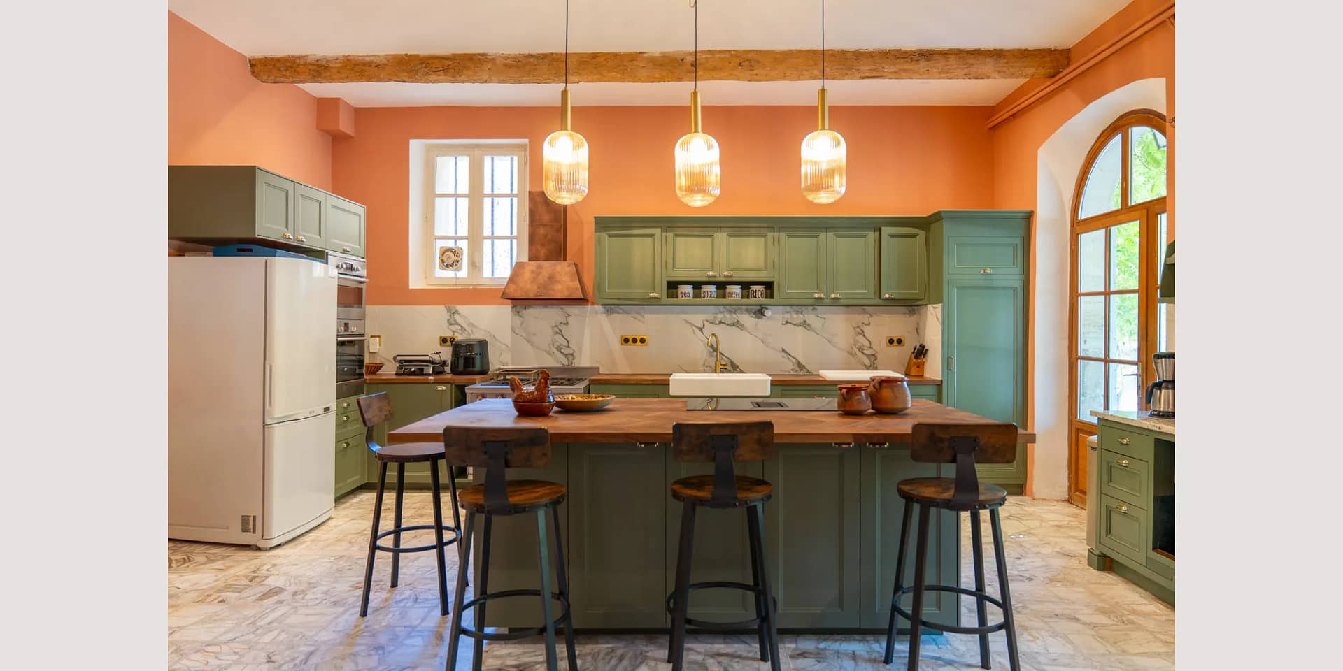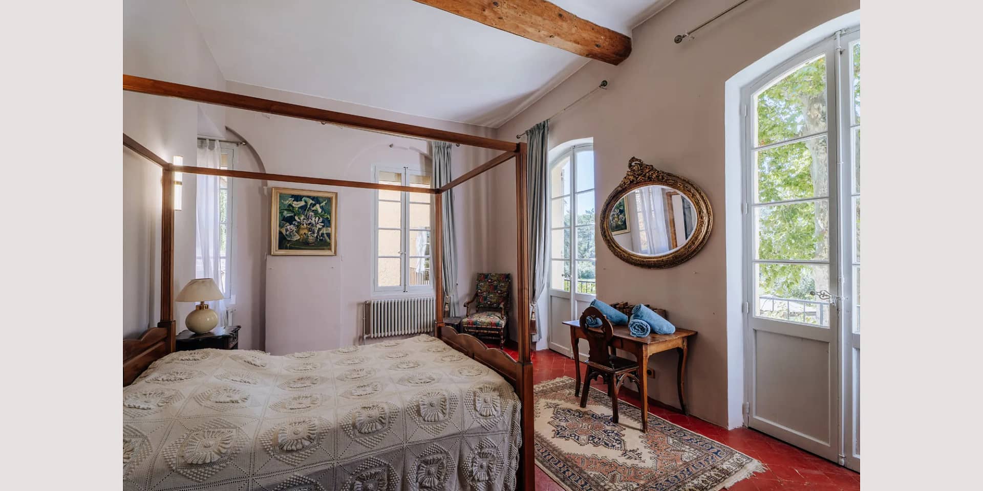 We love how the recent renovations at Chateau du Jonquier have blended the rich history of the chateau with modern charm. The chateau itself is luxurious, warm, and welcoming, with seven air-con bedrooms on-site – sleeping up to 14 people – and availability to stay in the neighbouring town. Guests can enjoy the elegance of the Grand Salon, complete with olive-coloured walls and opulent silk curtains.