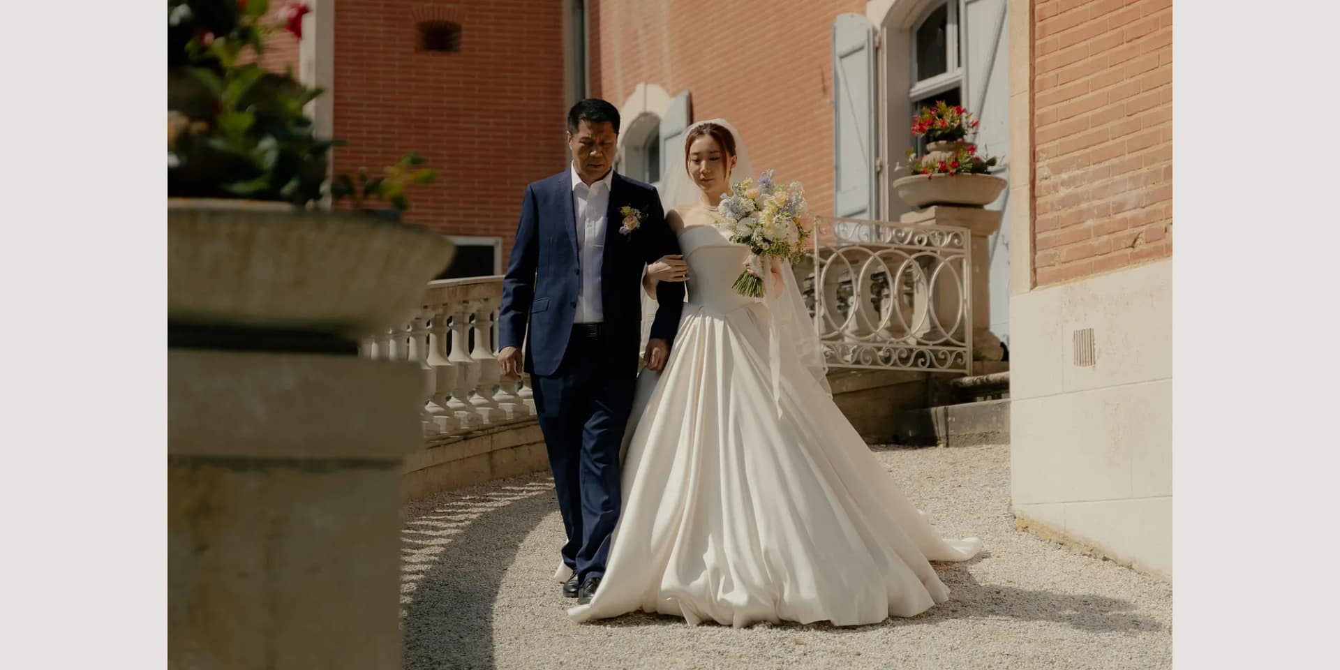 Washed in coral with soft blue shutters, the romantic Chateau Leroy will immediately conjure up images of beautiful weddings in the balmy light of the South of France.