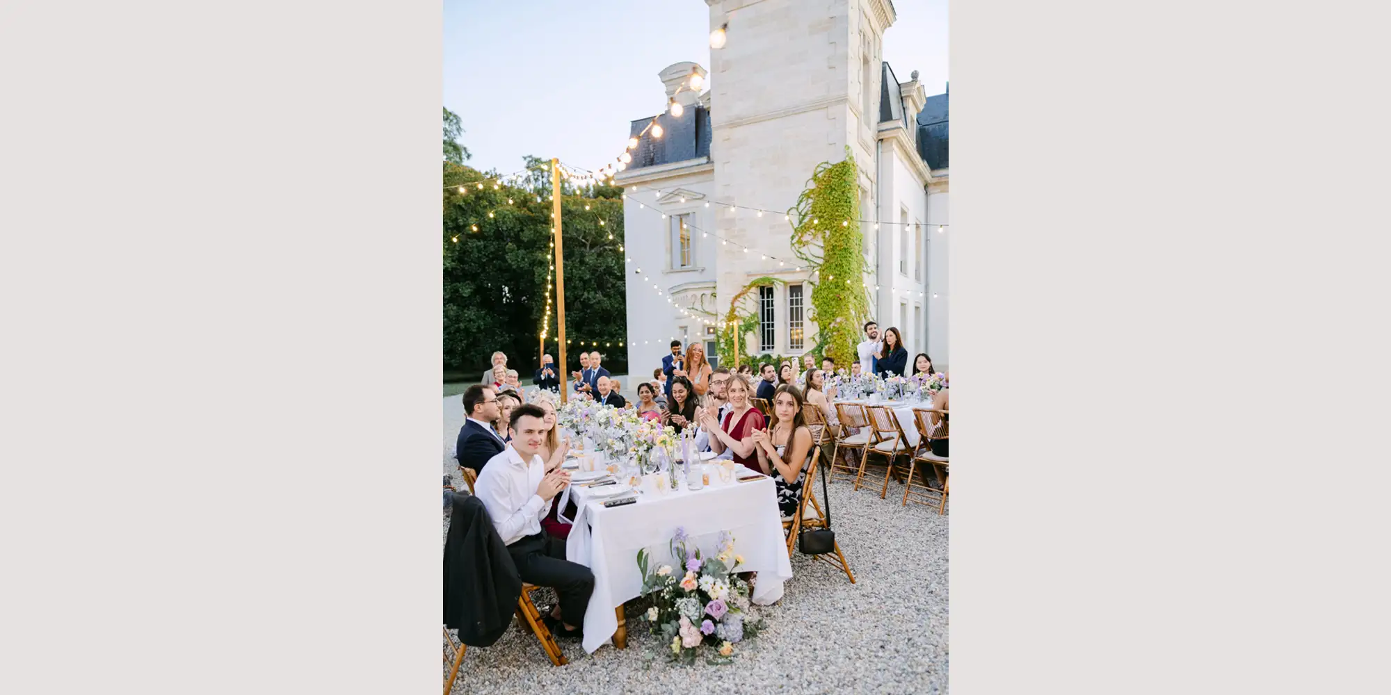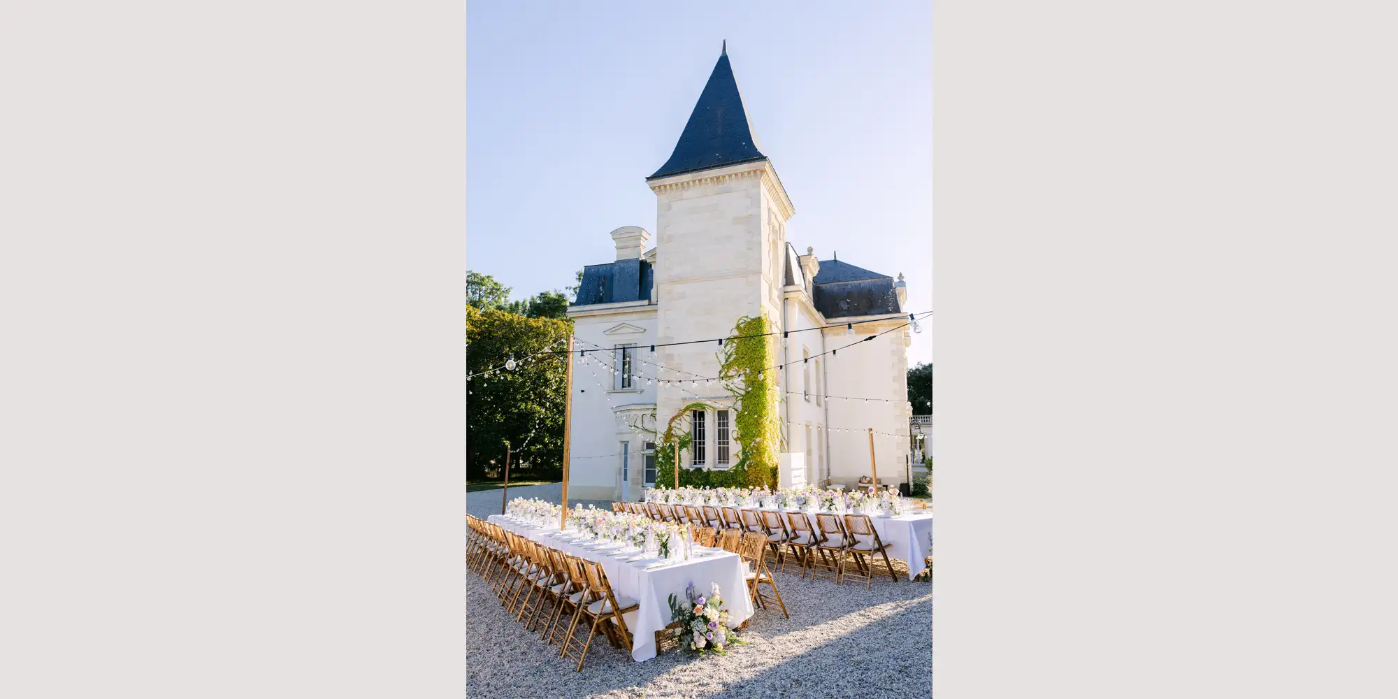 Outdoor Vineyard Wedding in Bordeaux with Courtyard Dining