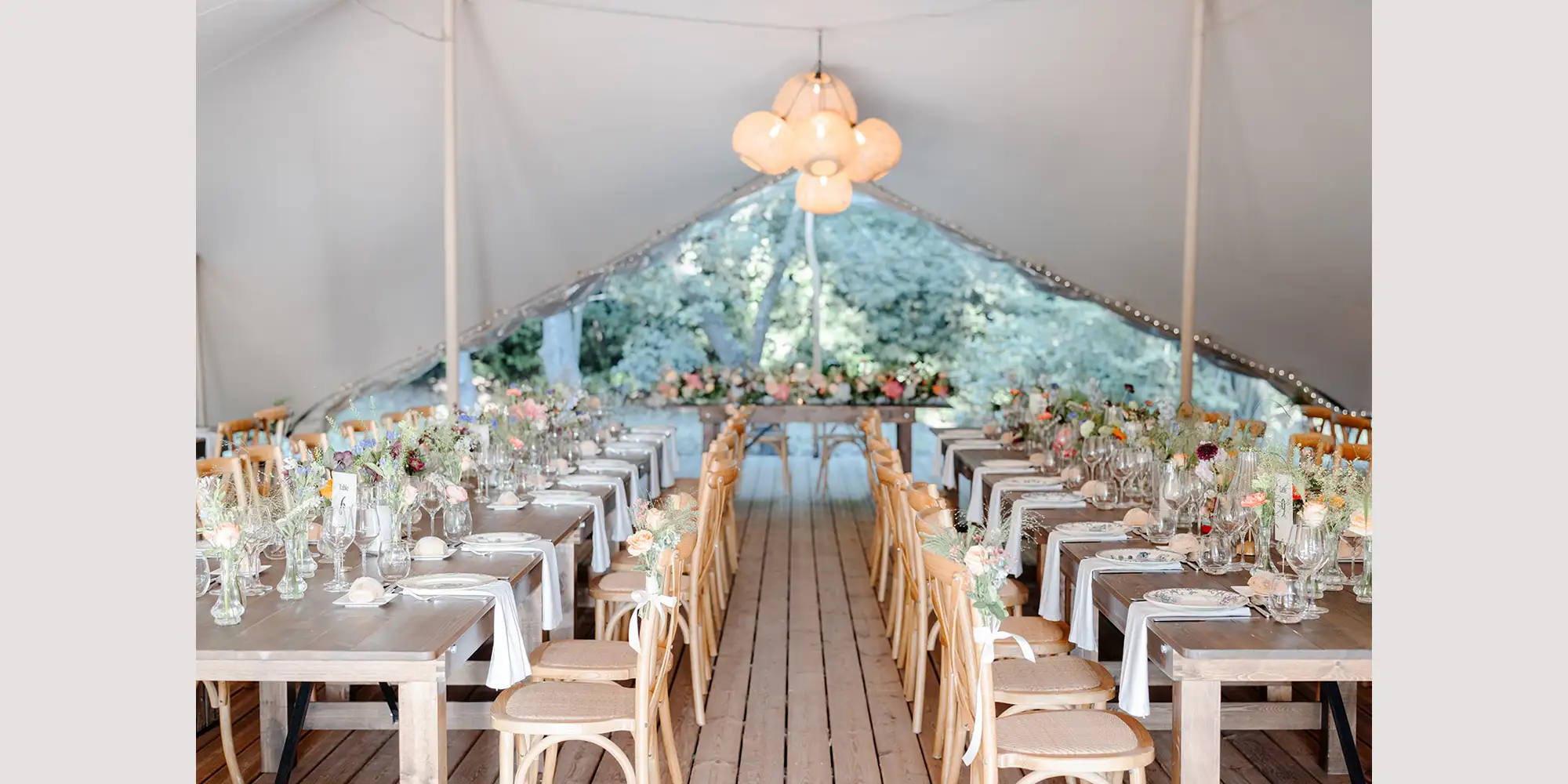 From May to September, a luxury tipi village can be added, accommodating an extra 20 to 80 guests – ideal for larger weddings where you want everyone to stay on site.